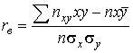 где C1 «ложный нуль» вариант X (новое начало отсчета); в качестве ложного нуля выгодно принять варианту, которая расположена примерно в середине вариационного ряда (условимся принимать в качестве ложного нуля варианту, имеющую наибольшую частоту); h1 – шаг, т.е. разность между двумя соседними вариантами X; C2 – «ложный нуль» вариант Y; h2 – шаг вариант Y. В этом случае выборочный коэффициент корреляции