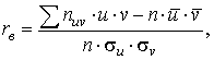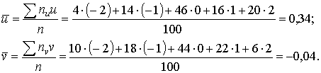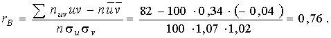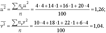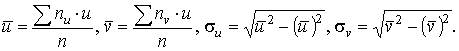 причем слагаемое Σ nuvuv удобно вычислять, используя расчётную табл. 7. Величины u, v, σu, σv могут быть найдены либо методом произведений (при большом числе данных), либо непосредственно по формулам: