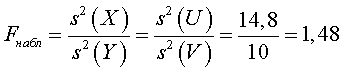 Правило 1. Для того чтобы при заданном уровне значимости α проверить нулевую гипотезу H0: D(Х) = D(Y) о равенстве генеральных дисперсий нормальных совокупностей при конкурирующей гипотезе Н1: D(Х) > D(Y), надо вычислить наблюдаемое значение критерия (отношение большей исправленной дисперсии к меньшей)