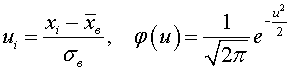 xi* = (xi + xi +1)/2. - Пронормировать X, т. е. перейти к случайной величине Z = (X − x*)/σ* и вычислить концы интервалов: zi = (xi − x*)/σ*, zi+1 = ( xi+1− x*)/σ*причем наименьшее значение Z, т. е. z1, полагают равным −∞. а наибольшее, т. е. zs+1, полагают равным ∞.