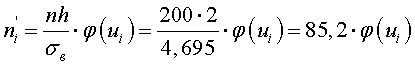 φ(ui) ni' = 85,2·φ(ui) 1 5 −1,62 0,1074 9,1 2 7 −1,20 0,1942 16,5 3 9 −0,77 0,2966 25,3 4 11 −0,35 0,3752 32,0 5 13 0,08 0,3977 33,9 6 15 0,51 0,3503 29,8 7 17 0,93 0,2589 22,0 8 19 1,36 0,1582 13,5 9 21 1,78 0.0818 7,0