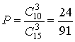 З а д а ч а 30. В ящике имеется 15 деталей, среди которых 10 окрашенных. Сборшик наудачу извлекает три детали. Найти вероятность того, что извлечённые детали окажутся окрашенными.