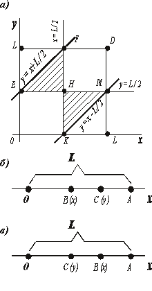 2. Пусть точка С расположена левее точки В (рис. 3, в). В случае должны иметь место неравенства у < L/2, x - y < L/2, L - x < L/2, или, что то же, y < l/2, y > x − L/2, x > L/2. (**)