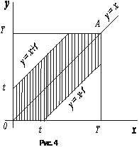 Введем в рассмотрение прямоугольную систему координат хОу. В этой системе двойным неравенствам удовлетворяют координаты любой точки, принадлежащей квадрату ОТАТ (рис. 4). Таким образом, этот квадрат можно рассматривать как фигуру 0, координаты точек которой представляют все возможные значения моментов поступления сигналов.