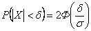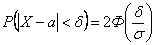 Вероятность того, что абсолютная величина отклонения случайной величины от математического ожидания меньше положительного числа δ равна