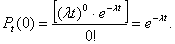 Р е ш е н и е. Предположим, что в момент t0 наступило событие A1 потока. Пусть t1 = t0 + t (рекомендуем для наглядности ось времени и отметить на ней точки t0 и t1). Если хотя бы одно событие потока, следующие за событием A1 произойдет в интервале, заключенном внутри интервала (t0, t1) например, в интервале (t0, t2), то время Т между появлениями двух последовательных событий окажется меньшим t, т.е. окажется, что Т < t. Для того чтобы найти вероятность P(T < t), примем во внимание, что событие – «внутри интервала (t0, t1) появилось хотя бы одно событие потока» и «внутри интервала (t0, t1) не появилось ни одного события потока» - противоположны (сумма их вероятностей равна единице).