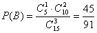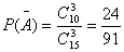 46. На стеллаже библиотеки в случайном порядке расставлено 15 учебников, причем пять из них в переплете. Библиотекарь берет наудачу три учебника. Найти вероятность того, что хотя бы один из взятых учебников окажется в переплете (событие A).