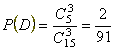 З а д а ч а 2. Среди 15 рабочих 5 женщин. В избирательную комиссию наудачу выбрано 3 человека. Найти вероятность того, что среди них есть хотя бы одна женщина.