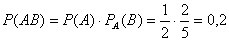 Вероятность того, что второй учебник имеет переплет, при условии, что первый взятый учебник был в переплете, т. е. условная вероятность события В, такова: РA (В) =2/5.