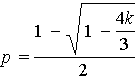 . (*)Второй способ. Введем обозначение Р (А + В + С) = k. Пользуясь теоремой сложения для трех совместных событий и учитывая, что Р (А) = Р(В) = Р(С) = р, Р (АВ) = Р (АС) = Р(ВС) = р², Р (АВС) = 0, получим k = Р (А) + Р (В) + Р (С) − Р (АВ) − Р(АС) - Р(ВС) + Р(АВС) = Зр - Зр². Решив это уравнение относительно р, получим