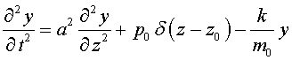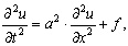 - масса единицы длины(линейная плотность струны), F- сила, действующая на струну перпендикулярно оси абсцисс и рассчитанная на единицу длины.Если внешняя сила отсутствует, т.е f = 0, то получается уравнение свободных колебаний струны