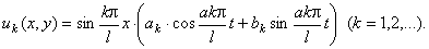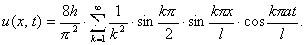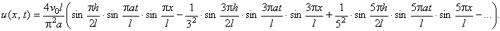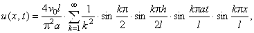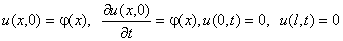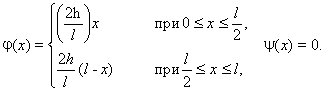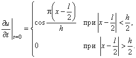 - Струна закреплена в точках x = 0 и x = l. Начальные отклонения точек струны равны нулю, а начальная скорость выражается формулой