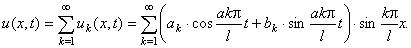 Решение уравнения колебания струны, закрепленной на концах, методом разделения переменных (методом Фурье)