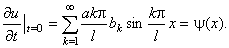 - Пусть начальные отклонения струны, закрепленной в точках x=0 и x=l, равны нулю, а начальная скорость выражается формулой