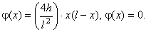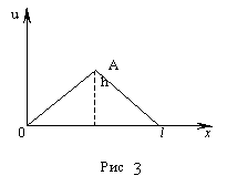 Р е к о м е н д а ц и и. Угловой коэффициент прямой OA равен h/(l/2), т.е. 2h/l. Следовательно, уравнение этой прямой есть u = (2h/l)x. Прямая AB отсекает на осях координат отрезки l и 2h; значит, уравнение этой прямой имеет вид x/l + u/(2h) = 1 или u = (2h/l) (l - x). Итак, Находим