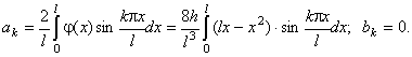 Для нахождения коэффициента ak дважды интегрируем по частям: