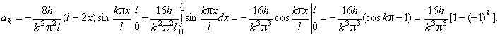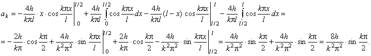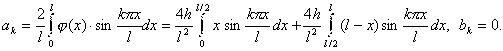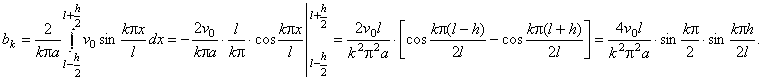 Рекомендации. Здесь φ(x) = 0, а ψ(x)= v0 в интервале ( (l - h)/2, (l + h)/2) и ψ(x) = 0 вне этого интервала. Следовательно, ak = 0; Отсюда