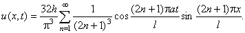 - Струна, закрепленная на концах x = 0 и x = l, в начальный момент имеет форму u = h(x4 - 2x ³ + x). Найти форму струны для любого момента времени t, если начальные скорости точек струны отсутствуют.