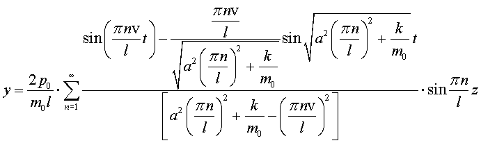 Р е ш е н и е. Дифференциальное уравнение колебаний рельса, лежащем на безинерционном основании с учётом сосредоточенной силы имеет вид