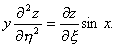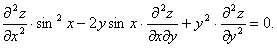 Указание. Здесь a = sin² x, b = - y sin x, c = y². Так как b² - ac = y² sin² x - y² sin² x = 0, данное уравнение - параболического типа.