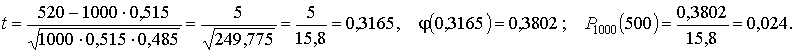 Пример 11. Вероятность рождения мальчика р = 0,515. Какова вероятность, что из 1000 рождающихся детей мальчиков будет 520?
