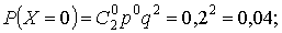 а) n = 3, p = 0,8, q = 0,2, k = 3