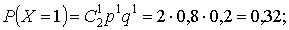 D(Х) = (0 - 1,6)2·0,04 + (1 - 1,6)2·0,32 + (2 - 1,6)2·0,64 = 0,32.