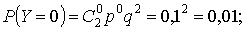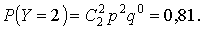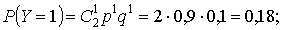 D(Y) = (0 - 1,8)2·0,01 + (1 - 1,8)2·0,18 + (2 - 1,8)2·0,81 = 0,18.