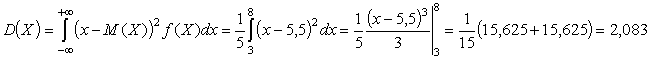 М(Х) = 2·0,1 + 4·0,2 + 6·0,5 + 8·0,2 = 5,86;