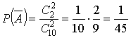 Решение. События А = {из выбранных деталей хотя бы одна является стандартной} и A = {из выбранных деталей ни одна не является стандартной} – два противоположных события. Используя связь вероятностей двух противоположных событий, найдём P (A). Восемь деталей из десяти можно выбрать