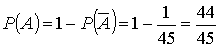 Пример 15. В урне имеется 10 деталей, из них 8 стандартные детали. Найти вероятность того, что из двух наугад выбранных деталей хотя бы одна будет стандартной.