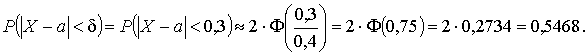 Пример 18. Случайная величина Х распределена нормально. Среднее квадратичное отклонение этой величины равно 0,4. Найти вероятность того, что