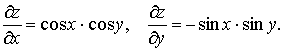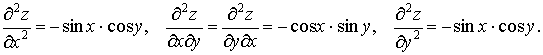 П р и м е р 3. Найти частные производные второго порядка функции z = sin x·cos y.