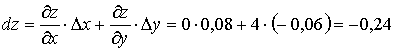 Найдём приращения аргументов: Δ x = x − x0 = 1,08 − 1 = 0,08; Δy= y − y0 = 1,94 − 2 = − 0,06.
