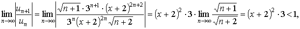 Р е ш е н и е. Найдём радиус сходимости этого степенного ряда. Коэффициенты ряда определяются соотношением