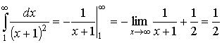 Этот ряд сходится по интегральному признаку, так как сходится несобственный интеграл