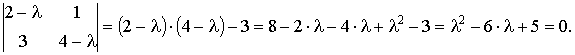 Решив это квадратное уравнение, получим λ1 = 5, λ2 = 1.