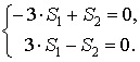 Первое и второе уравнения этой системы с точностью до знака совпадают, поэтому одно из этих двух уравнений отбросим как лишнее. Подставив в оставшееся уравнение S2 = 3·S1 значение S1 = 1, получим S2 = 3. Таким образом, собственным вектором S(1) , соответствующим собственному значению λ1 = 5, будет