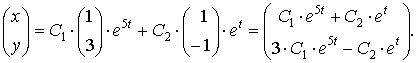 x = C1 e5t + C2 et, y = 3 C1 e5t - C2 et