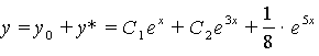 Так как корни характеристического уравнения не совпадают с числом α =5, то по правой части неоднородного уравнения найдём его частное решение в виде y* = A e5x. Подставляя это y*