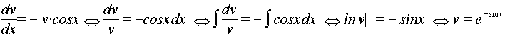 Подставиви найденное v во второе уравнение системы, будем иметь u' e- sin x = sin x·cos x → u' = sin x·cos x·esin x → u = ∫sin x·cos x·esin x d x →