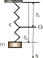 В положении этого статического равновесия выберем начало координат системы для определения движения груза. Направление оси выберем вниз. Движение груза будет развиваться по второму закону Ньютона
