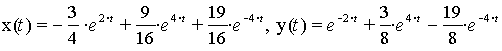 удовлетворяющее начальным условиям х (0) = 1, y (0) = − 1.