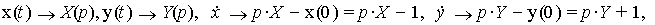 Заменяя в исходной системе уравнений все слагаемые их изображениями, получим операторную систему: