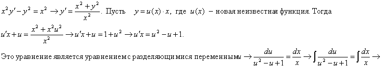 П р и м е р 1. Найти общее решение или общий интеграл дифференциального уравнения x2 y' − y2 = x2.