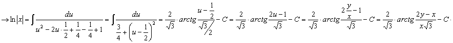 Если учесть то, что такое z, получим уравнение с разделяющимися переменными, решением которого будет