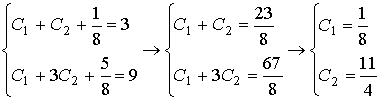Найдём значения произвольных постоянных С1 и С2 с учётом начальных условий: