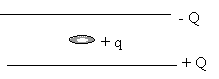 Между горизонтально расположенными пластинами (площадью S каждая) плоского конденсатора, по которым равномерно распределён заряд Q, неподвижно висит пылинка массой