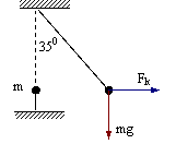 Два металлических шарика, массами m1 = m2 = m, один из которых закреплён, а второй подвешен на нити, приняли положение, показанное на рисунке. Найти силу взаимодействия этих шариков. (g = 10 м/с², m = 10 г, tg 35° ≈ 0,7) |