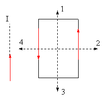 На рисунке показан длинный проводник с током I и рядом с ним прямоугольная рамка АВСD. В каком из указанных направлений 1, 2, 3 или 4 должна двигаться эта рамка, чтобы направление индукционного тока i, было таким, как показано на рисунке?  |